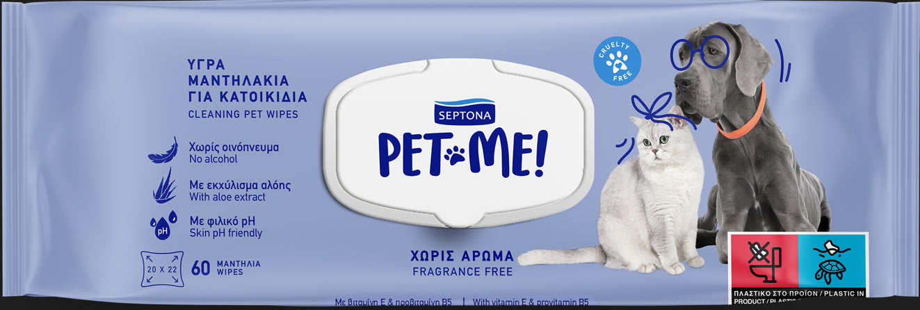 Мокри кърпи за куче и котка SEPTONA PET-ME 20*22 60 бр.