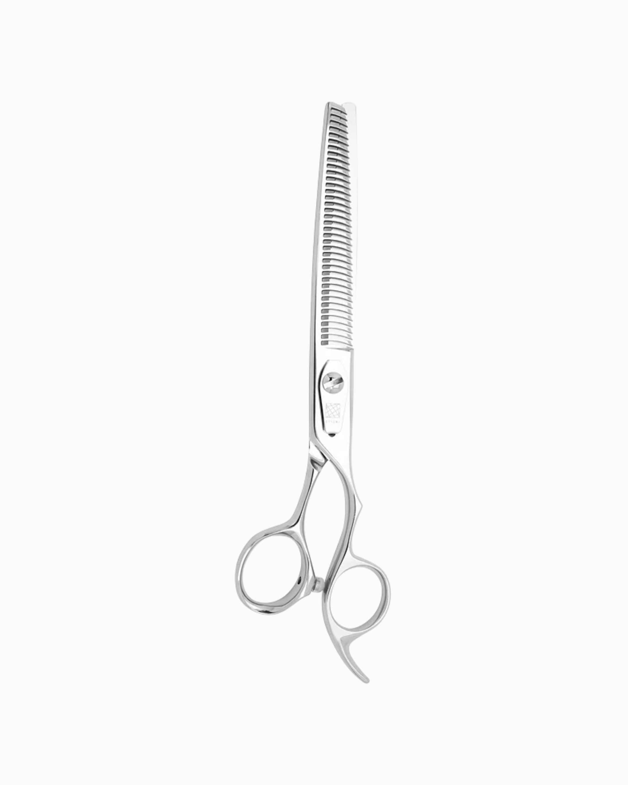 Ножицата UTSUMI PA 30-2 SPEEDY 2 THINNER 7" е създадена за професионални грумъри, които търсят идеалния баланс между ефективност и финес. С 30% степен на изтъняване и 38 микроназъбени зъба, тя позволява гладко и естествено разреждане на козината, без видими следи или неравности.
